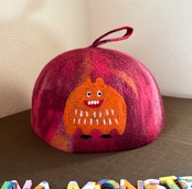 サウナモンスターのサウナハットは比較的に丈が長めで、顔まで覆っているものが多いですがこちらはヘルメットのようなまんまるな形でチョコンと被るタイプのサウナハットです。