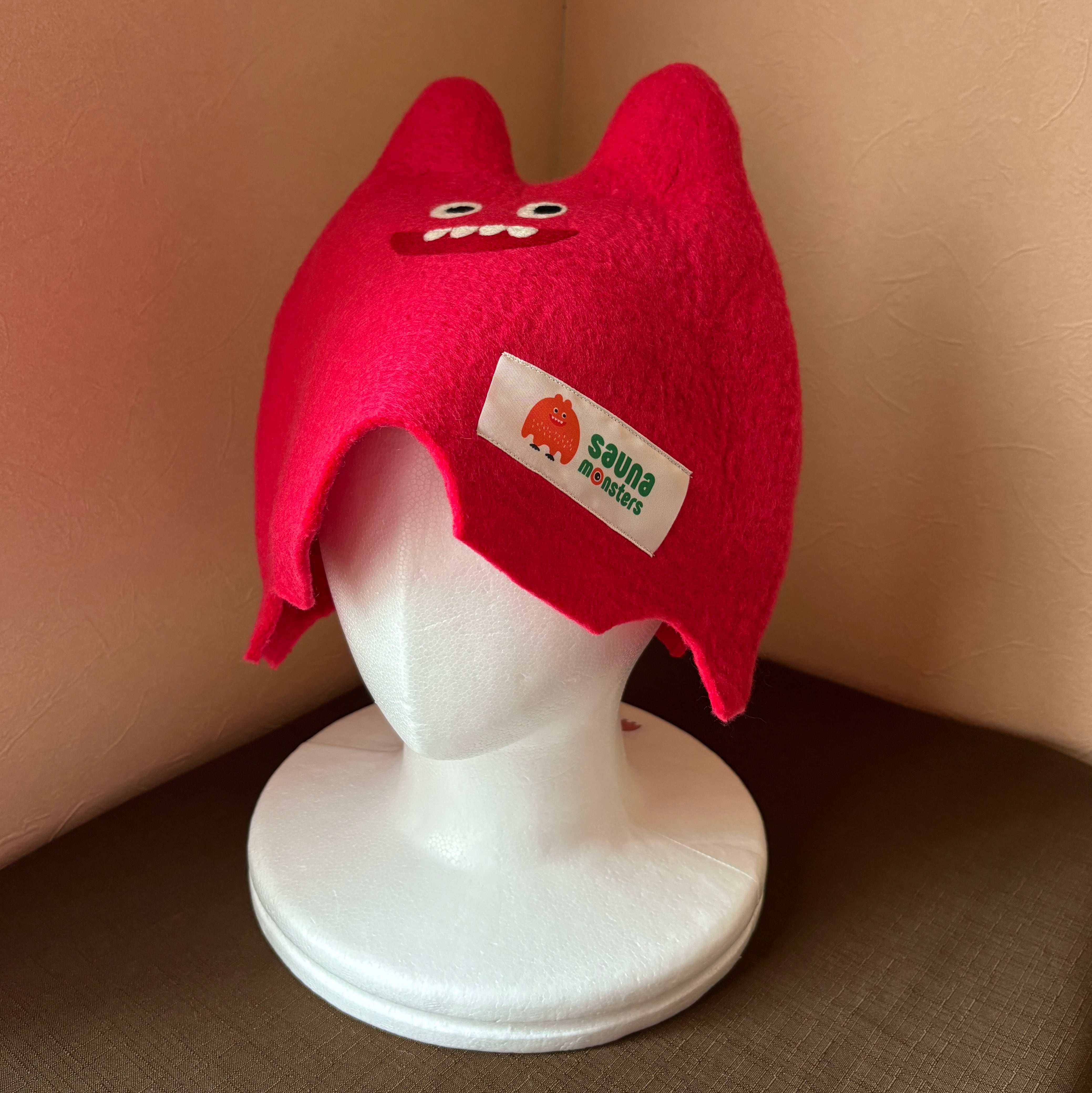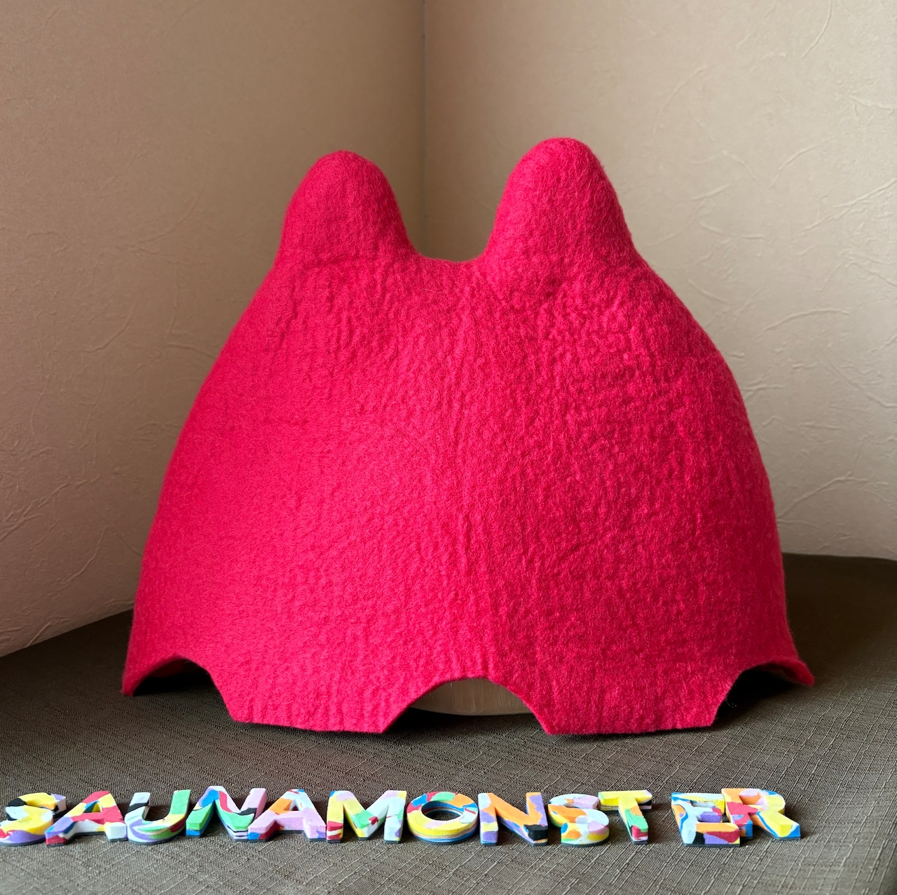 サウナモンスターのキャラクター、サウナモンのサウナハット。(こちらは赤ピンクカラーとなります)
